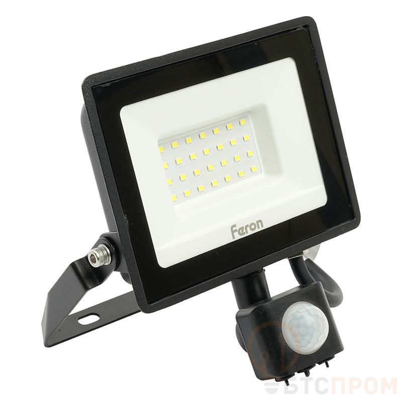 Прожектор светодиодный многоматричный с монтажным креплением на кронштейн, с инфракрасным датчиком движения (ДО) FERON LL-907, 30W, 6400К (холодный белый), 175-265V/50Гц, 3000Lm, IP65, угол рассеивания 120°, 28*SMD2835, раб.t -40°C - +40°C, цвет черный, корпус алюминий литой под давлением + стекло, 127*144*63 мм