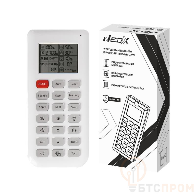Пульт дистанционного управления ПУ-RC09-WH-LEVEL от NEOX — это универсальное и надежное решение для управления светотехникой. Корпус выполнен в классическом белом цвете, что позволяет ему гармонично вписаться в любой современный интерьер.