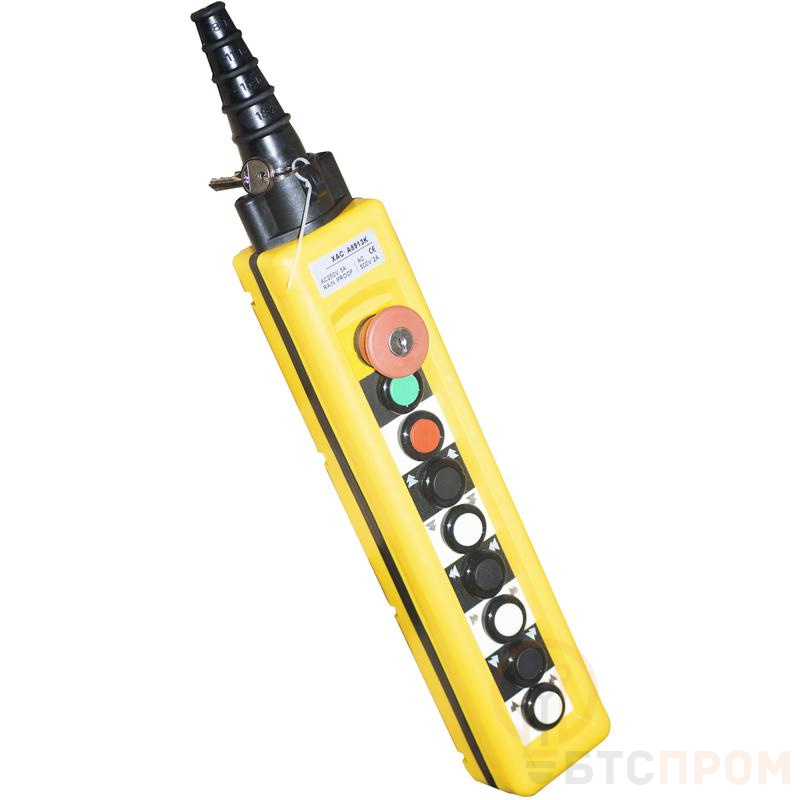 Пульт предназначен для дистанционного управления двигателями кранов мостового, консольного и козлового типа, тельферов, а также других промышленных устройств. Он совместим с различными схемами управления, работая на пониженном напряжении, что гарантирует безопасность персонала. Кабель ввода имеет сальниковый уплотнитель для защиты от пыли и влаги.