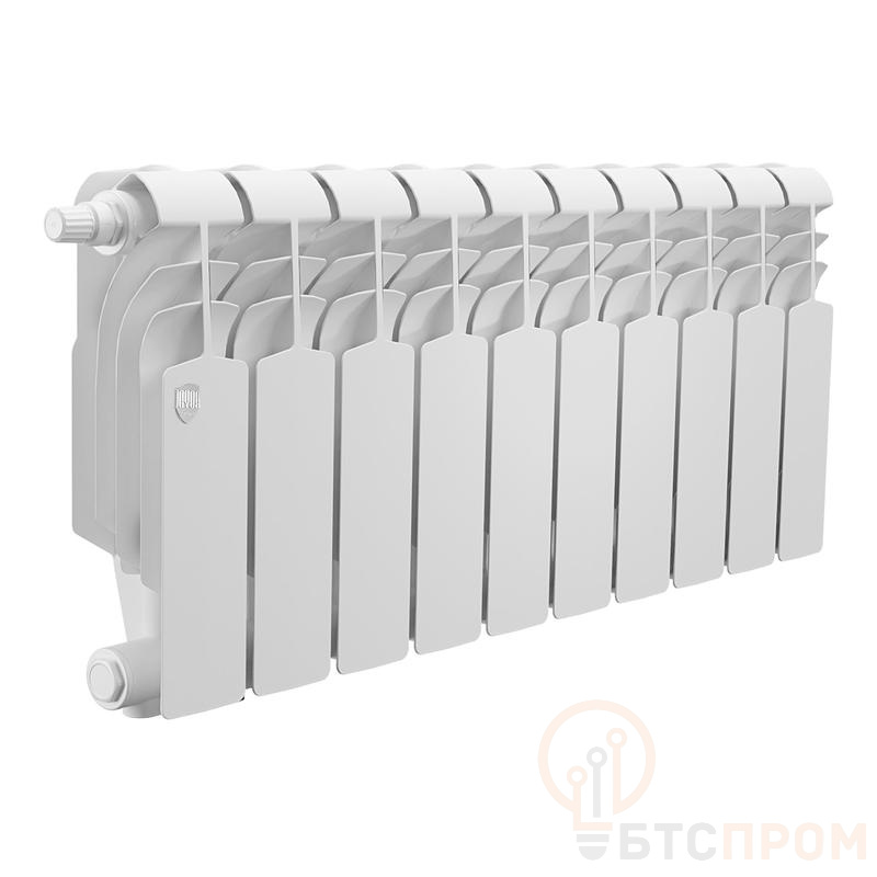 Биметаллический радиатор для любых систем отопления с нижним подключением. Первый радиатор спроектированный в лаборатории Royal Thermo с применением математического моделирования, что позволило увеличить теплоотдачу прибора на 3%. Повышенная мощность, технология POWERSHIFT Дополнительное оребрение на вертикальном коллекторе секции увеличивает теплоотдачу радиатора на 5%. Такое решение способствует более быстрому обогреву помещений при том же размере и весе секций. 100% НАСТОЯЩИЙ БИМЕТАЛЛ. Применение полностью стального закладного элемента, выполненного из углеродистой стали марки 20, которая отличается повышенной коррозионной стойкостью и эксплуатационной надежностью. Гарантирует надежную работу в системах, подверженных гидроударам и с химически агрессивными теплоносителями (в том числе антифризами). Oxsilan 9807 новое поколение экологически чистого покрытия без тяжелых металлов и фосфатов. Oxsilan 9807 наносится на секцию радиатора перед покраской и за счет улучшенной адгезии лакокрасочного покрытия повышает антикоррозийную стойкость и долговечность радиаторов. Сверхстойкая 7-этапная NANO-покраска TECNOFIRMA. Нанесение экологически чистых нано-красок AkzoNobel (Нидерланды) и FreiLacke (Германия) в семь этапов гарантирует стойкость к механическим повреждениям и обеспечивает долговечность покрытия радиатора в помещениях с повышенной влажностью. В комплекте: вентильная вставка, направляющая потока, кран Маевского в цвет радиатора, гайки с заглушкой в цвет радиатора и адаптеры для узлов нижнего подключения.