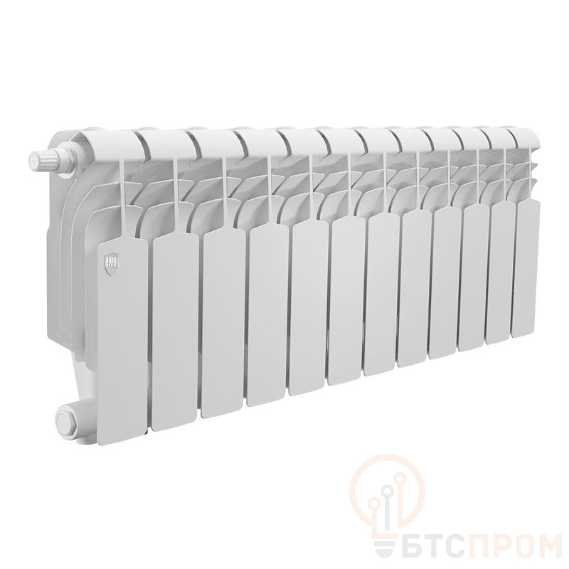 Биметаллический радиатор для любых систем отопления с нижним подключением. Первый радиатор спроектированный в лаборатории Royal Thermo с применением математического моделирования, что позволило увеличить теплоотдачу прибора на 3%. Повышенная мощность, технология POWERSHIFT Дополнительное оребрение на вертикальном коллекторе секции увеличивает теплоотдачу радиатора на 5%. Такое решение способствует более быстрому обогреву помещений при том же размере и весе секций. 100% НАСТОЯЩИЙ БИМЕТАЛЛ. Применение полностью стального закладного элемента, выполненного из углеродистой стали марки 20, которая отличается повышенной коррозионной стойкостью и эксплуатационной надежностью. Гарантирует надежную работу в системах, подверженных гидроударам и с химически агрессивными теплоносителями (в том числе антифризами). Oxsilan 9807 новое поколение экологически чистого покрытия без тяжелых металлов и фосфатов. Oxsilan 9807 наносится на секцию радиатора перед покраской и за счет улучшенной адгезии лакокрасочного покрытия повышает антикоррозийную стойкость и долговечность радиаторов. Сверхстойкая 7-этапная NANO-покраска TECNOFIRMA. Нанесение экологически чистых нано-красок AkzoNobel (Нидерланды) и FreiLacke (Германия) в семь этапов гарантирует стойкость к механическим повреждениям и обеспечивает долговечность покрытия радиатора в помещениях с повышенной влажностью. В комплекте: вентильная вставка, направляющая потока, кран Маевского в цвет радиатора, гайки с заглушкой в цвет радиатора и адаптеры для узлов нижнего подключения.
