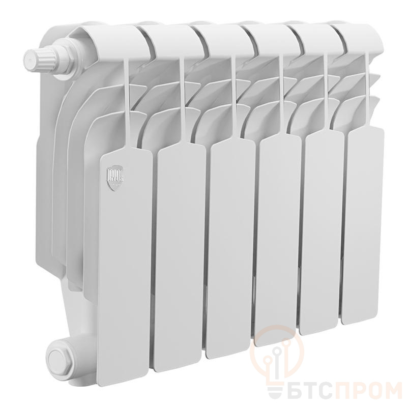 Биметаллический радиатор для любых систем отопления с нижним подключением. Первый радиатор спроектированный в лаборатории Royal Thermo с применением математического моделирования, что позволило увеличить теплоотдачу прибора на 3%. Повышенная мощность, технология POWERSHIFT Дополнительное оребрение на вертикальном коллекторе секции увеличивает теплоотдачу радиатора на 5%. Такое решение способствует более быстрому обогреву помещений при том же размере и весе секций. 100% НАСТОЯЩИЙ БИМЕТАЛЛ. Применение полностью стального закладного элемента, выполненного из углеродистой стали марки 20, которая отличается повышенной коррозионной стойкостью и эксплуатационной надежностью. Гарантирует надежную работу в системах, подверженных гидроударам и с химически агрессивными теплоносителями (в том числе антифризами). Oxsilan 9807 новое поколение экологически чистого покрытия без тяжелых металлов и фосфатов. Oxsilan 9807 наносится на секцию радиатора перед покраской и за счет улучшенной адгезии лакокрасочного покрытия повышает антикоррозийную стойкость и долговечность радиаторов. Сверхстойкая 7-этапная NANO-покраска TECNOFIRMA. Нанесение экологически чистых нано-красок AkzoNobel (Нидерланды) и FreiLacke (Германия) в семь этапов гарантирует стойкость к механическим повреждениям и обеспечивает долговечность покрытия радиатора в помещениях с повышенной влажностью. В комплекте: вентильная вставка, направляющая потока, кран Маевского в цвет радиатора, гайки с заглушкой в цвет радиатора и адаптеры для узлов нижнего подключения.