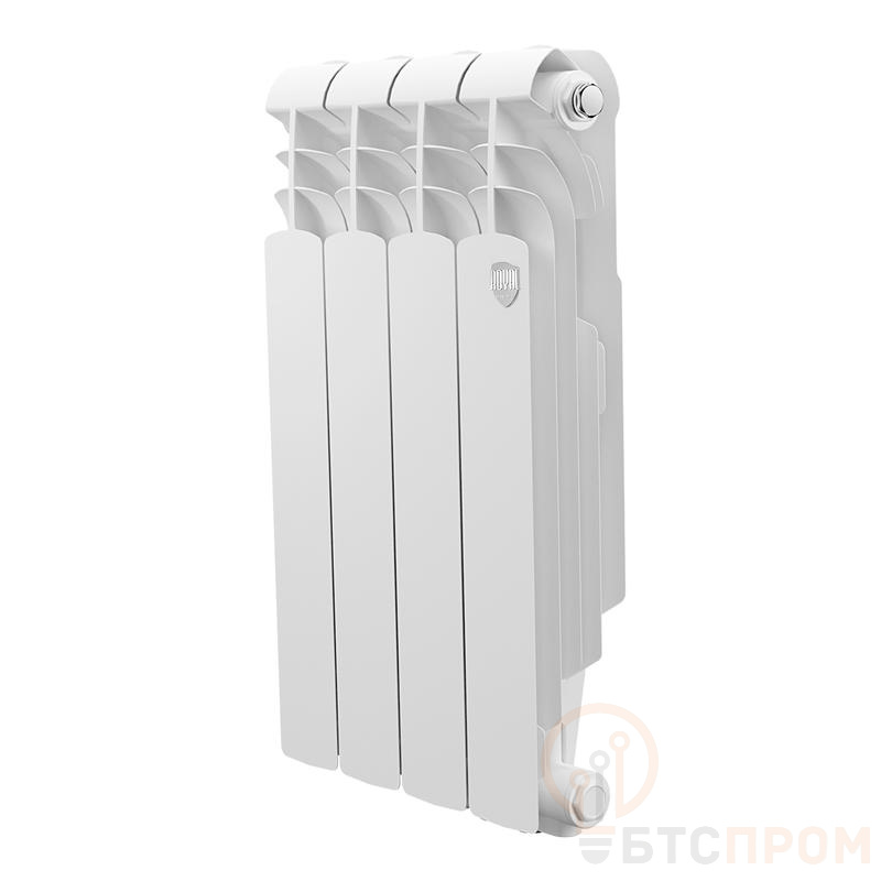 Биметаллический радиатор для любых систем отопления с нижним подключением Уникальная разработка. Первый радиатор спроектированный в лаборатории Royal Thermo с применением математического моделирования, что позволило увеличить теплоотдачу прибора на 3%. Повышенная мощность, технология POWERSHIFT. Дополнительное оребрение на вертикальном коллекторе секции увеличивает теплоотдачу радиатора на 5%. Такое решение способствует более быстрому обогреву помещений при том же размере и весе секций. 100% НАСТОЯЩИЙ БИМЕТАЛЛ. Применение полностью стального закладного элемента, выполненного из углеродистой стали марки 20, которая отличается повышенной коррозионной стойкостью и эксплуатационной надежностью. Гарантирует надежную работу в системах, подверженных гидроударам и с химически агрессивными теплоносителями (в том числе антифризами). Oxsilan 9807 новое поколение экологически чистого покрытия без тяжелых металлов и фосфатов Oxsilan 9807 наносится на секцию радиатора перед покраской и за счет улучшенной адгезии лакокрасочного покрытия повышает антикоррозийную стойкость и долговечность радиаторов. Сверхстойкая 7-этапная NANO-покраска TECNOFIRMA. Нанесение экологически чистых нано-красок AkzoNobel (Нидерланды) и FreiLacke (Германия) в семь этапов гарантирует стойкость к механическим повреждениям и обеспечивает долговечность покрытия радиатора в помещениях с повышенной влажностью. В комплекте: вентильная вставка, направляющая потока, кран Маевского в цвет радиатора, гайки с заглушкой в цвет радиатора и адаптеры для узлов нижнего подключения.
