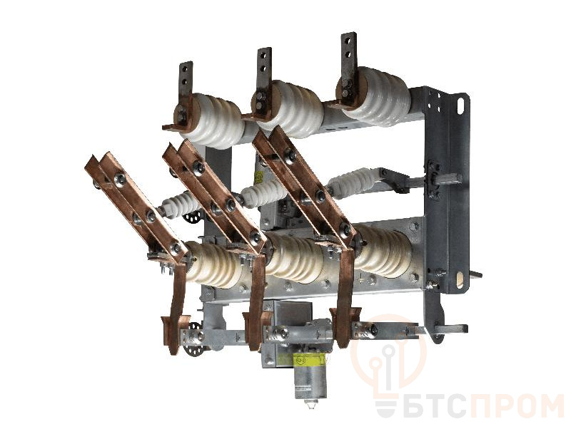 Разъединитель с электромоторным приводом РВФЗ-РС-МП-10/1000-II-II-И1-У3 от КОНТИТЕНТ ЭНЕРГО предназначен для коммутации электрических цепей под напряжением и создания видимого разрыва в электроустановках переменного тока частотой 50-60 Гц с напряжением до 10 кВ.