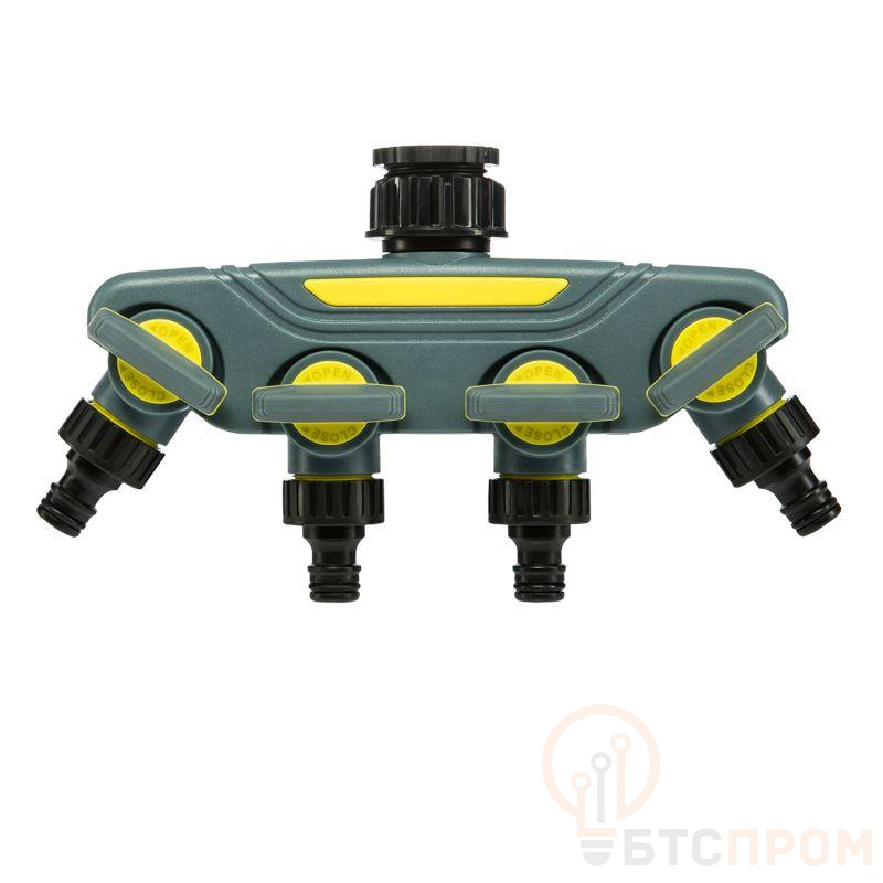 Разветвитель предназначен для подключения четырех шлангов через коннекторы к крану с внешней резьбой. Обеспечивает независимое управление четырьмя отдельными поливочными линиями, что позволяет адаптировать полив под различные потребности растений и зон. Каждый канал имеет свой собственный переключатель, что позволяет полностью контролировать подачу воды для каждой отдельной зоны. Это означает, что один канал можно отключить, а другой оставить включенным. Крайние адаптеры являются поворотными, что позволяет легко подсоединить шланги под разными углами, минимизирует натяжение и износ шлангов, а также снижает риск протечек. Разветвитель выполнен из высококачественного АБС-пластика, стойкого к ультрафиолетовым лучам и низким температурам. Благодаря термопластичной резине не скользит в руках. Обеспечивает надежное и герметичное соединение за счет резиновых уплотнителей.