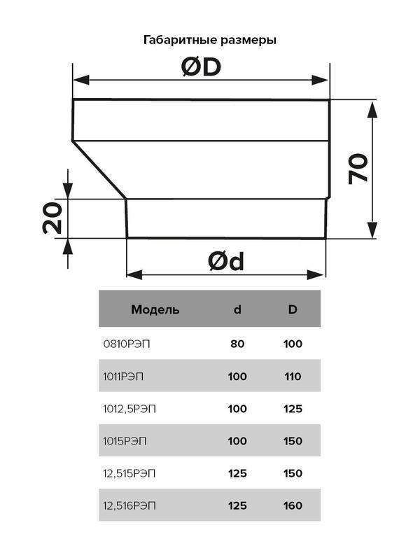 Эксцентриковые редукторы круглых каналов РЭП используется для соединения воздуховодов разного диаметра. Соединяются напрямую с круглыми воздуховодами.
