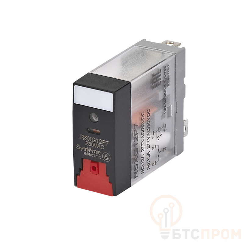 Реле SE RSXG12P7 — это надежное и функциональное электромеханическое реле, предназначенное для коммутации нагрузок в цепях переменного тока. Ключевая характеристика прибора — номинальный ток 12 А при напряжении 230 В, что делает его идеальным для управления мощными потребителями, такими как освещение, двигатели, нагревательные элементы и другие силовые установки.