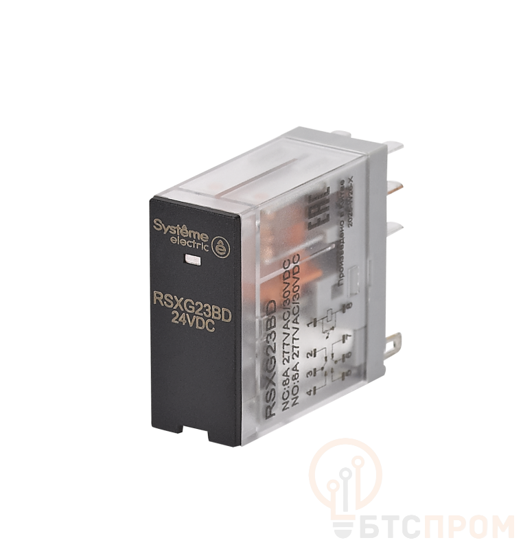 Реле промежуточное 8А 2CO 24В DC LED SE RSXG23BD — это компактное и надечное электромеханическое устройство, предназначенное для коммутации цепей управления и сигнализации. Ключевая характеристика — два независимых перекидных контакта (2CO) с номинальным током до 8А, что позволяет одновременно управлять двумя различными цепями. Устройство рассчитано на номинальное напряжение катушки 24В постоянного тока, а наличие светодиодного индикатора (LED) обеспечивает визуальный контроль статуса работы.