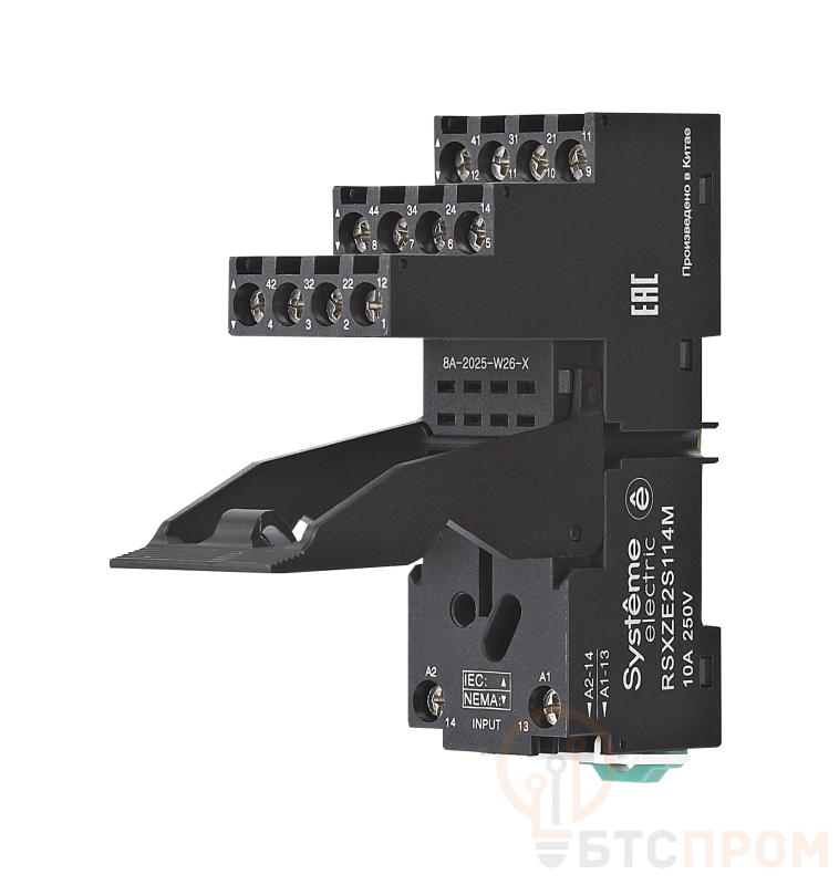 Розетка для реле серии SE RSXZE2S114M — это специализированное устройство, предназначенное для монтажа и удобного подключения реле управления 4СО. Модель оснащена четырьмя перекидными контактами (4СО), рассчитанными на коммутацию нагрузки до 10А, что обеспечивает надежное управление различными цепями.