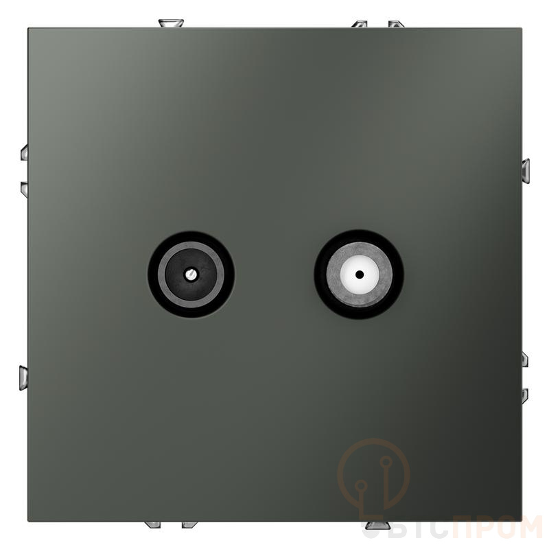 Механизм выполнен в стильном цвете «титан» и предназначен для установки в стандартную монтажную коробку глубиной 60 мм. Розетка имеет оконечную схему подключения, что обеспечивает стабильный и четкий сигнал без помех. Конструкция предусматривает удобное подключение кабеля через винтовые зажимы, обеспечивающие надежный контакт. Лицевая панель механизма соответствует стандарту S70 для эстетичного монтажа в серию розеток.