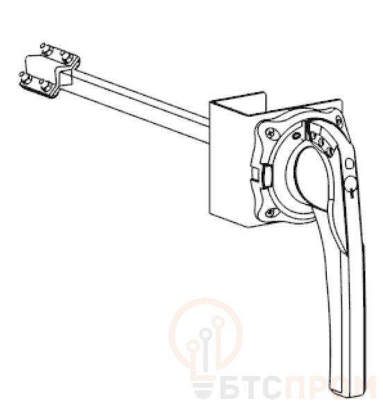 Выносная поворотная рукоятка выключателей-разъединителей серии SystemePact SP SD на ток 630 А; установка – боковая слева на стенку щита; цвет – черная. Поворотная рукоятка обеспечивает управление выключателем-разъединителем при замыкании и размыкании электрических цепей в распределительных щитах.