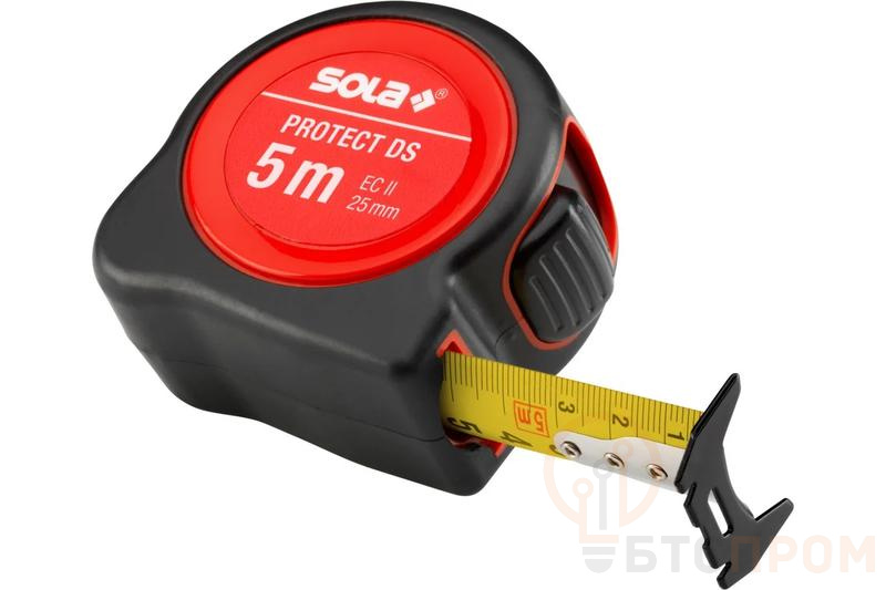 Рулетка измерительная PROTECT PE DS 525 – профессиональный инструмент для точных линейных измерений. Корпус выполнен из ударопрочного пластика с резиновыми накладками для надежного хвата. Лента шириной 25 мм имеет матовое покрытие, что предотвращает блики и облегчает считывание показаний.