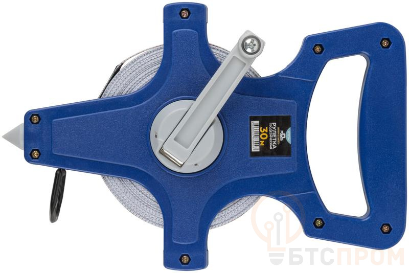 Для измерения линейных размеров. С помощью заостренного штыка инструмент можно надежно закрепить в грунте, что особенно удобно при выполнении измерений на длинные расстояния. Ручка обеспечивает легкое и быстрое сматывание измерительной ленты. • Рулетка прочно фиксируется в земле за счет заостренного наконечника.