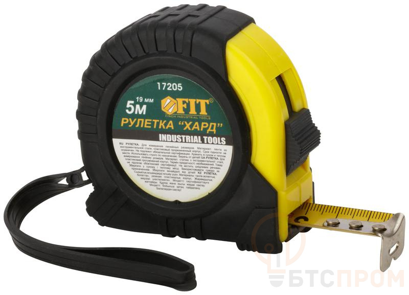 Рулетка ‘’Хард’’ FIT IT предназначена для измерений линейных размеров. Корпус рулетки изготовлен из ударопрочного ABS-пластика, устойчивого к механическим воздействиям. Резиновые накладки на корпусе предотвращают повреждения инструмента при падении или ударе. Полимерное покрытие измерительной ленты защищает шкалу от истирания. Рулетку можно крепить на ремне с помощью металлической клипсы. Тканевый ремешок позволяет носить рулетку на руке или хранить в подвешенном положении.