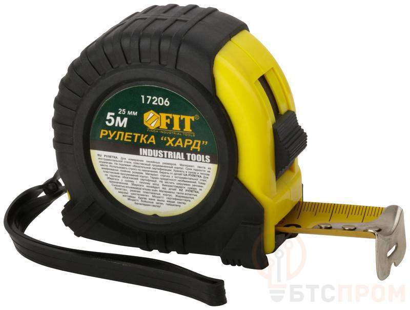 Рулетка ‘’Хард’’ FIT IT предназначена для измерений линейных размеров. Корпус рулетки изготовлен из ударопрочного ABS-пластика, устойчивого к механическим воздействиям. Резиновые накладки на корпусе предотвращают повреждения инструмента при падении или ударе. Полимерное покрытие измерительной ленты защищает шкалу от истирания. Рулетку можно крепить на ремне с помощью металлической клипсы. Тканевый ремешок позволяет носить рулетку на руке или хранить в подвешенном положении.