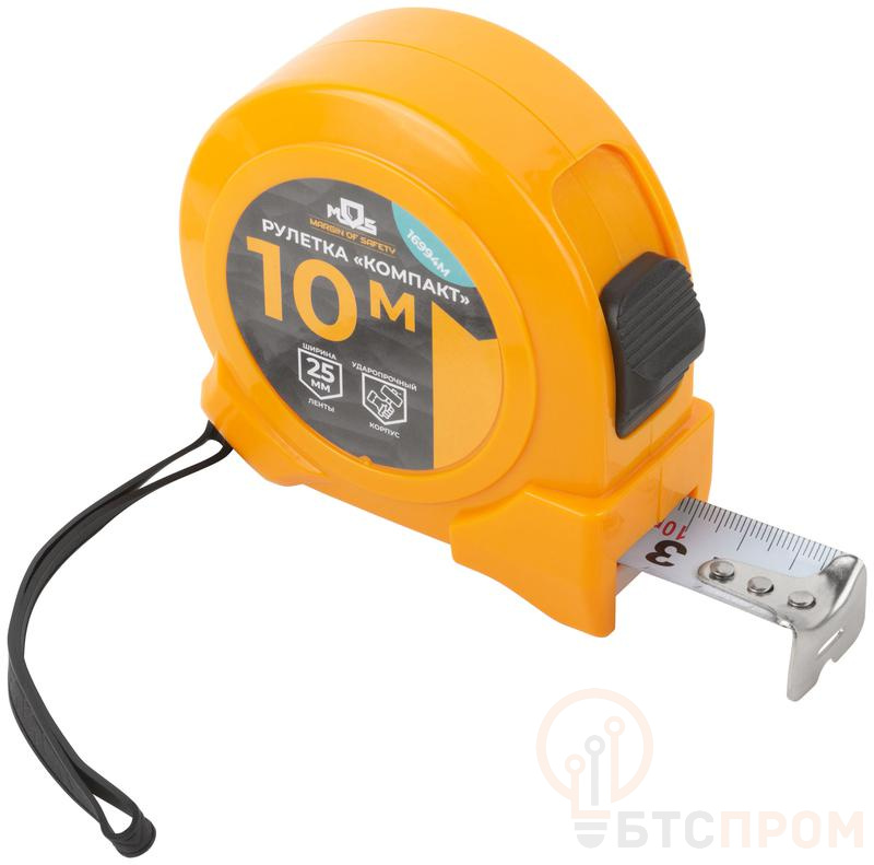 Рулетка измерительная MOSNAR 16994М – это надежный и компактный инструмент для выполнения точных замеров. Основная лента длиной 10 метров имеет ширину 25 мм, что обеспечивает ее жесткость и позволяет производить измерения на весу на значительном расстоянии без сгибов. Лента изготовлена из высококачественной стали с защитным покрытием, устойчивым к истиранию.