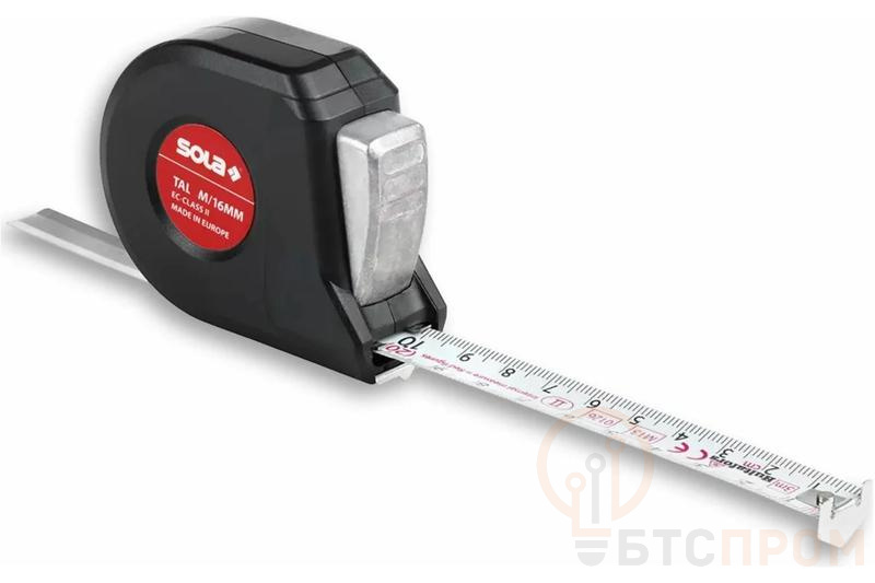 Рулетка измерительная Talmeter TAL 2м SOLA 51011201 — надежный инструмент для точных замеров в быту, на стройке и в ремонте. Корпус выполнен из ударопрочного пластика, устойчивого к механическим воздействиям. Лента шириной 13 мм с матовым покрытием обеспечивает четкую видимость крупных черных метрических делений. Двусторонняя шкала позволяет снимать показания как в метрической системе (до 2 метров), так и в дюймах.