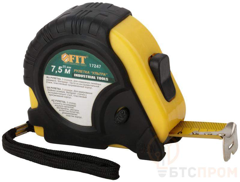 Рулетка Ультра 7.5мх25мм прорезиненный корпус тройн. стопор FIT 17247 фото в каталоге от BTSprom.by