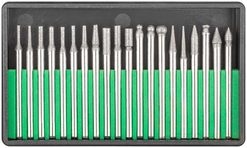 Шарошки алмазные MOS предназначены для обработки металлов, стекла, камня, дерева, пластика и других материалов. Для работы с гравировальной машинкой. Шарошки используются для работы с дрелью и гравировальной машинкой. Шарошки изготовлены из инструментальной стали, что обеспечивает их долговечность и надежность в использовании. Режущая кромка содержит порошок из технических алмазов. 20 разных типоразмеров в комплекте обеспечивают широкий спектр применения.