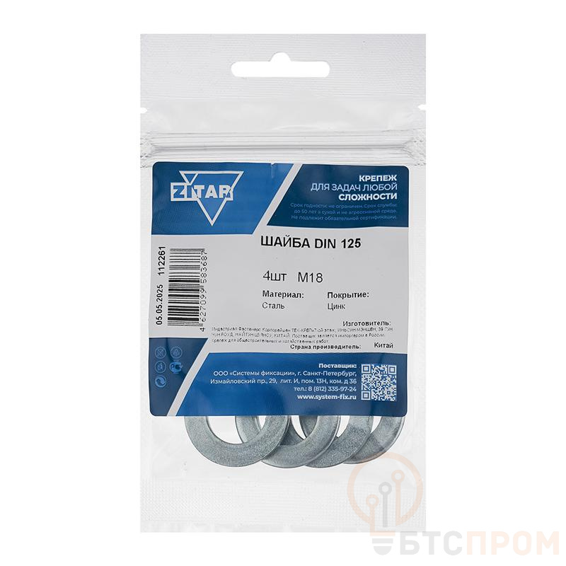 Шайба плоская М18 DIN 125а оцинк. (уп.4шт) Tech-Krep/Zitar 112261 фото в каталоге от BTSprom.by