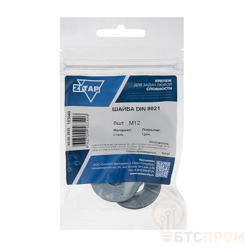 Шайба кузовная М12 DIN 9021 оцинк. (уп.8шт) Tech-Krep/Zitar 103040 фото в каталоге от BTSprom.by