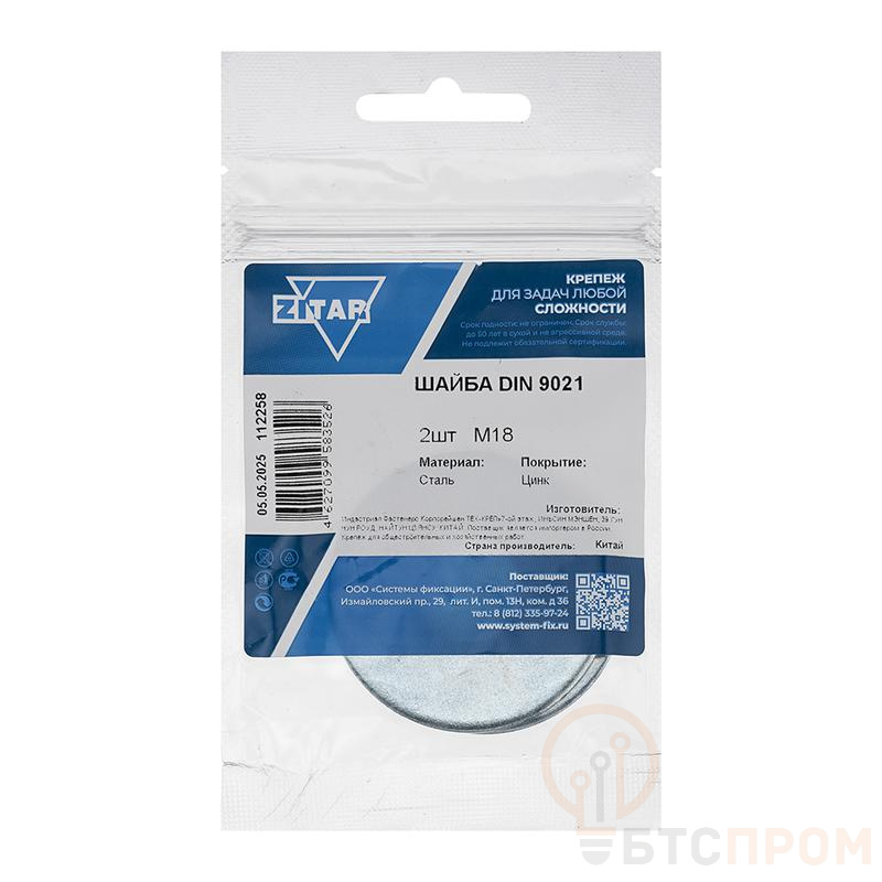 Шайба кузовная М18 DIN 9021 оцинк. (уп.2шт) Tech-Krep/Zitar 112258 фото в каталоге от BTSprom.by