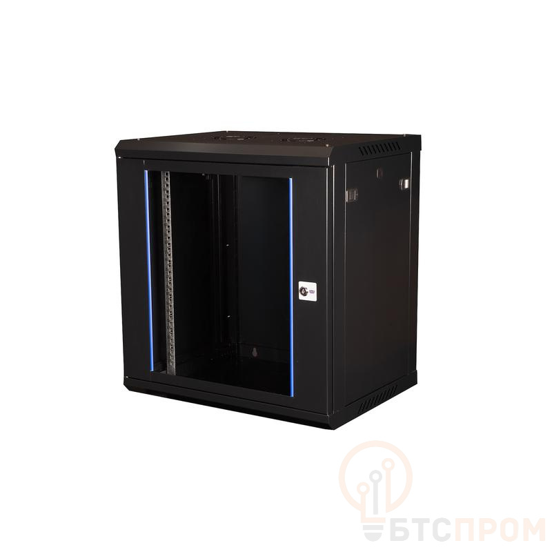 Передняя дверь выполнена из прочного закаленного стекла черного цвета, что позволяет визуально контролировать состояние устройств без открывания, поддерживая эстетичный внешний вид. Модель оснащена перфорированной задней дверью для эффективной вентиляции и циркуляции воздуха, боковые панели являются съемными для удобства монтажа.