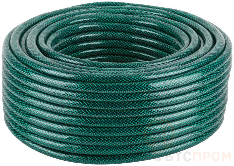 Шланг поливочный трехслойный, армированный синтетической нитью КУРС РОС предназначен для полива, перекачки и прочих работ с холодной водой. Внутренний ПВХ-слой — непрозрачный, защищает от проникновения солнечных лучей и препятствует образованию водорослей внутри шланга. Наружный ПВХ-слой — прозрачный, окрашен в зеленый цвет. При производстве используют специальные добавки, защищающие от воздействия внешних факторов, таких как ультрафиолетовое излучение или истирание. Между внутренним и наружным слоями проложен высокопрочный плетеный корд из синтетической нити. Шланги не перегибаются и не заламываются.