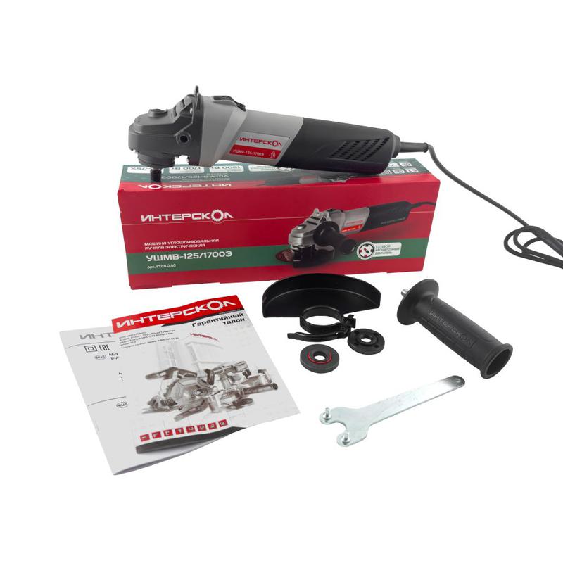 Машина шлифовальная угловая бесщеточная УШМВ-125/1700Э (1700Вт 3000-10000об/мин регулировка оборотов плавный пуск) ИНТЕРСКОЛ 912.0.0.40