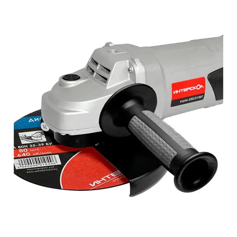 Угловая шлифовальная машина (УШМ) ИНТЕРСКОЛ УШМ-230/2100Т — это мощный и надежный инструмент для интенсивных работ по резке и шлифовке. Асинхронный двигатель на 2100 Вт обеспечивает высокую производительность и стабильную работу под нагрузкой. Частота вращения диска до 6500 об/мин позволяет эффективно работать с твердыми материалами.