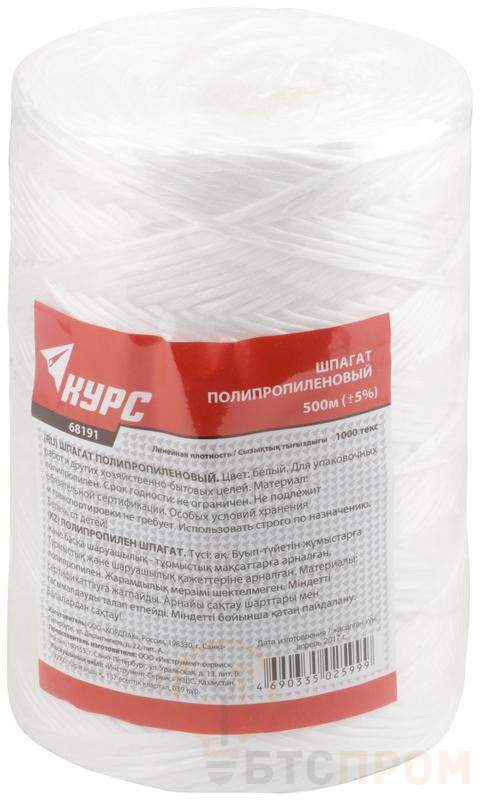 Шпагат полипропиленовый КУРС РОС предназначен для складского применения и домашнего хозяйства. Шпагат из полипропилена широко используют в упаковочных работах, оформлении, декоре. Синтетическое волокно обладает легкостью, прочностью, устойчивостью против воздействия воды, биоразрушения, а также многих химических веществ. Плотность материала позволяет рассчитать вес и объём для организации хранения или транспортировки, а также расход материала на реализацию творческого проекта.