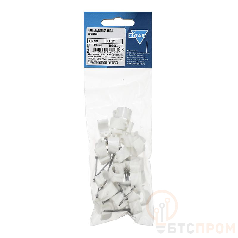 Скоба для кабеля круглая диаметром 12 мм от бренда Tech-Krep/Zitar – это надежное и простое решение для крепления электрических проводов, кабелей и труб в системах электромонтажа и коммуникаций. Изделие изготовлено из прочного нейлона, который обладает устойчивостью к коррозии, воздействию ультрафиолета и перепадам температур, что гарантирует долгий срок службы.