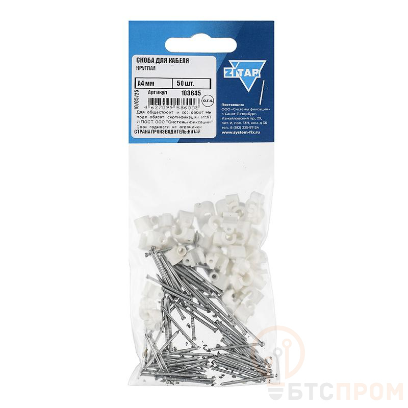 Скоба для кабеля круглая диаметром 4 мм от бренда Tech-Krep/Zitar – это надежное и простое решение для крепления электрических проводов, кабелей и труб в строительстве, монтаже и быту. Изделие изготовлено из прочной оцинкованной стали, что обеспечивает устойчивость к коррозии и длительный срок службы.