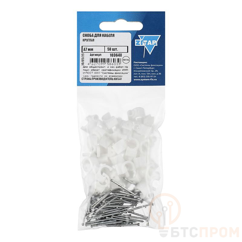 Скоба для кабеля круглая диаметром 7 мм от бренда Zitar – это надежное и простое решение для крепления электрических проводов и кабелей. Изделие изготовлено из прочного черного нейлона, который обладает высокой механической прочностью, устойчивостью к ультрафиолету и перепадам температур.