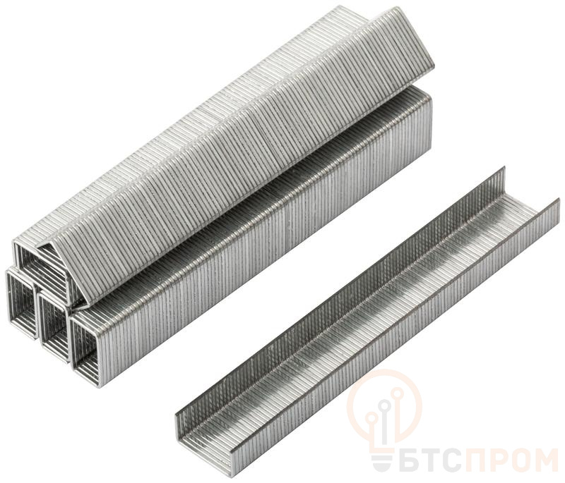 Узкие скобы для степлера (тип 53) КУРС предназначены для крепления легких листовых материалов (ткань, холсты, картон, изоляционные материалы, тонкий металл). Закалка стали расширяет круг применения скоб. Цинковое покрытие защищает скобы от коррозии. В упаковке содержится 1000 штук скоб, что позволяет использовать их при выполнении большого объема работ.