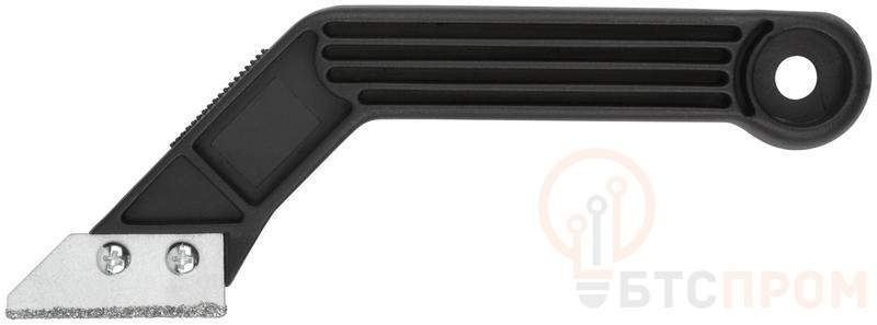 Скребок для кафеля FIT IT ‘’Профи’’ предназначен для очистки швов плитки от излишков клея. Лезвие скребка изготовлено из высокоуглеродистой инструментальной стали, режущая кромка выполнена из твердосплавного карбид-вольфрамового сплава ВК8, обладающего высоким ресурсом. Скребок не оставляет царапин и сколов на поверхностях за счет углового расположения лезвия. Запасное лезвие в комплекте.
