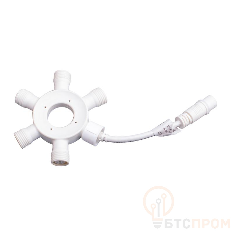 Соединитель для гирлянд Uniel UTC-F90 Y6 WHITE — это надежное решение для создания разветвленной системы освещения. Модель выполнена в классическом белом цвете и имеет круговую конструкцию с 1 входом и 5 выходами, что позволяет подключить до пяти гирлянд к одному источнику питания одновременно.
