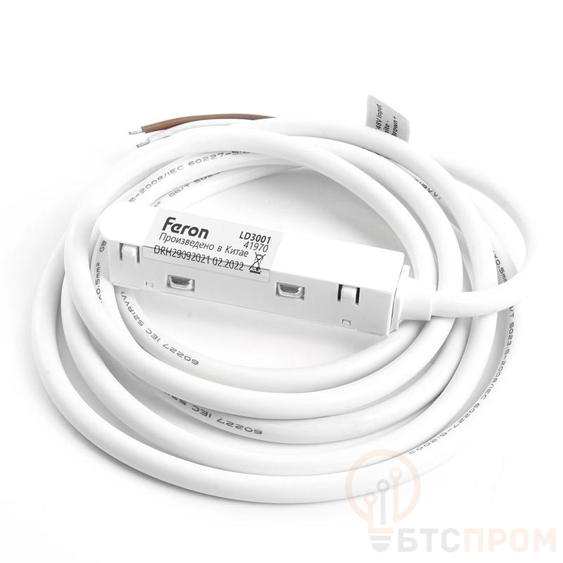 Соединитель-коннектор для низковольтного шинопровода, белый, кабель 2м LD3001