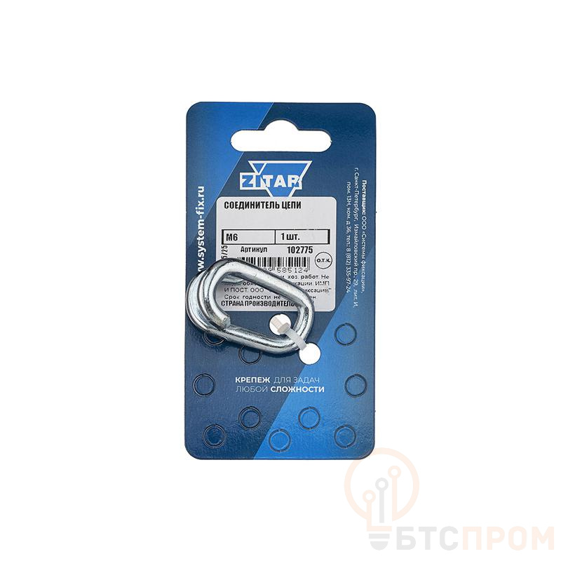 Область применения: предназначен для неразъемного соединения цепей при ремонте или наращивании длины, а также для крепления к конструкциям или опорам. Не рекомендуется применять для грузоподъемных работ. Материал: углеродистая сталь с антикоррозионным цинковым покрытием. Особенности: после присоединения соединитель необходимо заварить при помощи электросварки. Размер соединителя цепи соответствует диаметру поперечного сечения проволоки, из которой он выполнен.