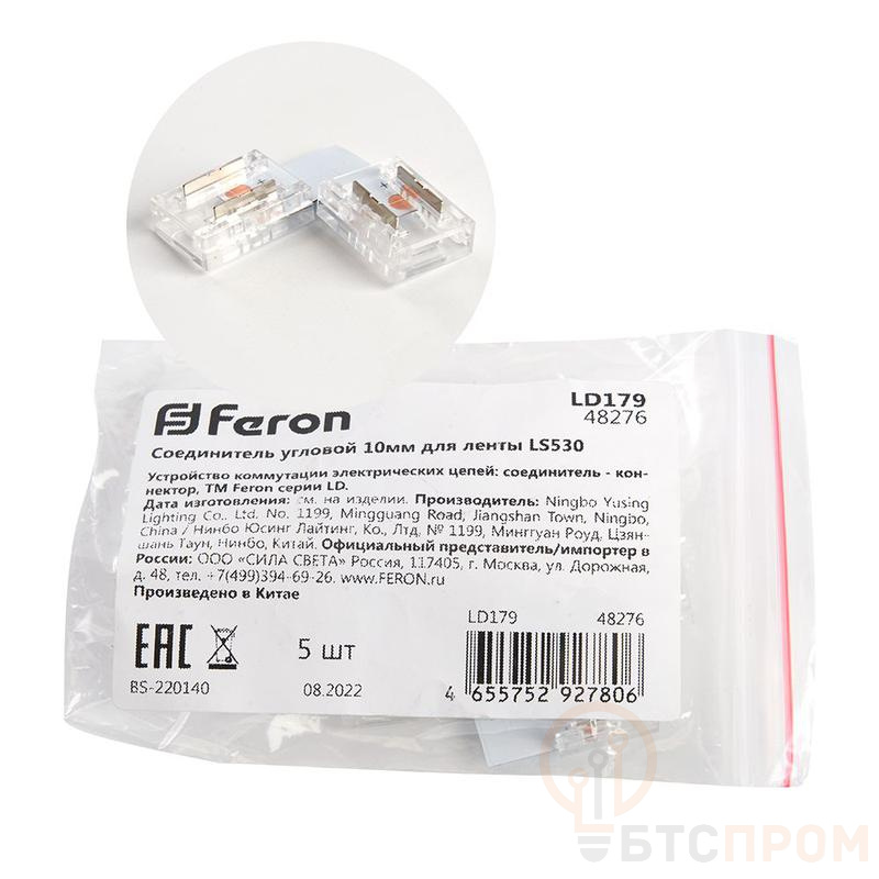 Соединитель угловой 12мм для COB ленты шириной 10 мм, LD179 FERON