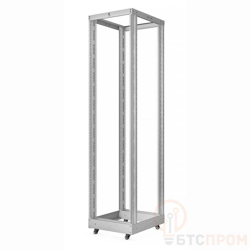 Ключевые характеристики: Высота — 45 юнитов (2309 мм), стандартная ширина 19 дюймов, глубина 1070 мм. Открытая рама позволяет удобно подключать и обслуживать оборудование со всех сторон. Стойка оснащена регулируемыми по высоте монтажными стойками, перфорированной задней панелью для крепления кабельных организаторов и системой нивелируемых опор для устойчивой установки на неровных поверхностях.