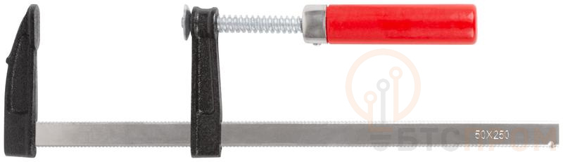Струбцина типа F КУРС предназначена для фиксации деталей при проведении столярных, слесарных и других видов работ. F-образная конструкция отличается универсальностью и простотой использования. Струбцина изготовлена из качественной инструментальной стали, что обеспечивает ее прочность и долговечность. Пластиковые накладки на зажимных губках предотвращают повреждение детали. Деревянная рукоятка обеспечивает надежный хват.