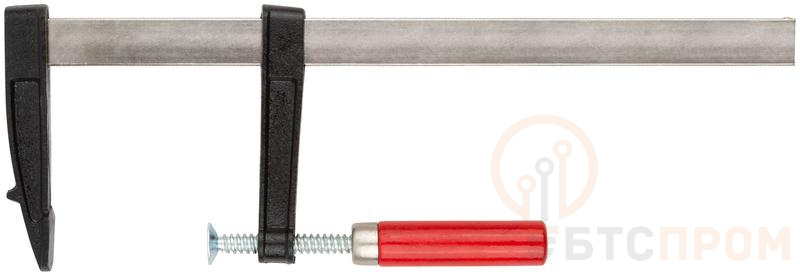 Струбцина типа F КУРС предназначена для фиксации деталей при проведении столярных, слесарных и других видов работ. F-образная конструкция отличается универсальностью и простотой использования. Струбцина изготовлена из качественной инструментальной стали, что обеспечивает ее прочность и долговечность. Пластиковые накладки на зажимных губках предотвращают повреждение детали. Деревянная рукоятка обеспечивает надежный хват.