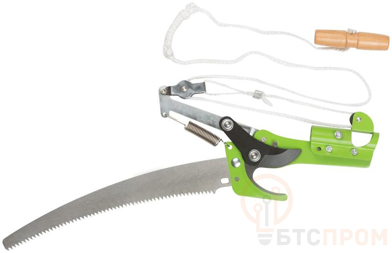 Для ухода за кронами деревьев, а также за ветками, расположенными высоко от земли. Длина пилы 330 мм. Сучкорез 30 мм. Материал: сучкорез выполнен из стали. Лезвия сучкореза выполнены из высокоуглеродистой стали с тефлоновым покрытием, пила из 65 Mn стали. Lверевки = 3800 мм. Упаковка: блистер.