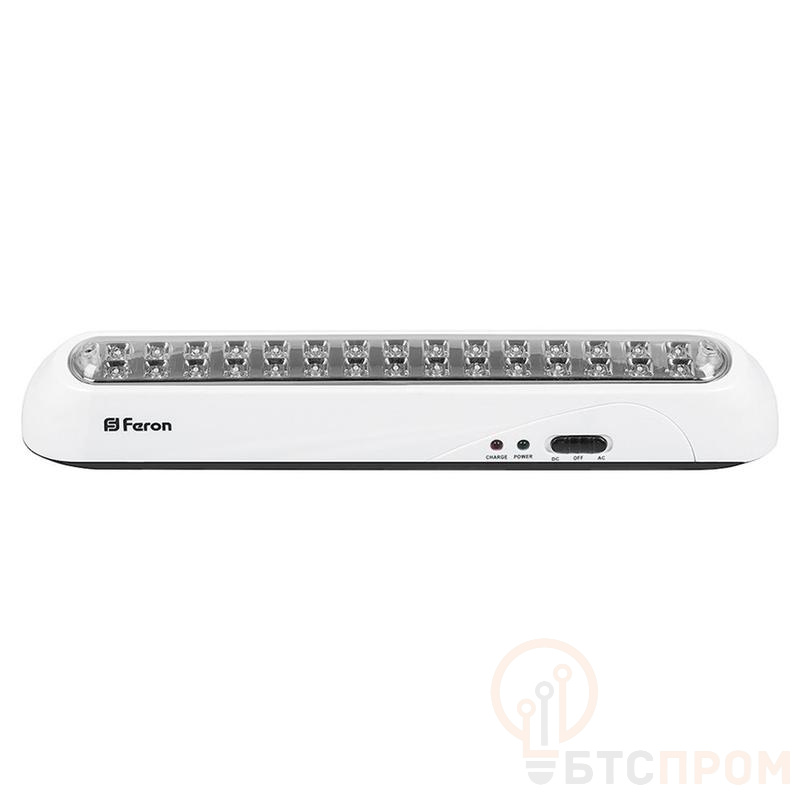 Светильник аккумуляторный FERON EL20 AC/DC, 30LED/дневной, 110-240V, IP20, аккумулятор 3,7/1300mAh/Li-Ion (литий-ионный), количество режимов 2, время зарядки 15-18 часов, время работы 3/5 часов, цвет белый, 350*50*55мм