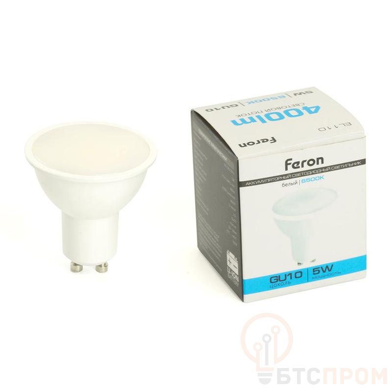 Светильник аккумуляторный FERON EL110 с цоколем, 26LED/дневной, 185-265V, IP20, аккумулятор 3,7/300mAh/Li-Ion (литий-ионный), количество режимов 1, время зарядки 12 часов, время работы 2,5, цвет белый, 50*50*58мм