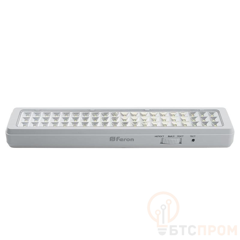 Светильник FERON EM112 AC/DC, 60LED/дневной, 110-240V, IP20, аккумулятор 3,6/1800mAh/Ni-Cd (никель-кадмиевый), количество режимов 2, время зарядки 12 часов, время работы 3 часа, цвет белый, 348*38*39мм