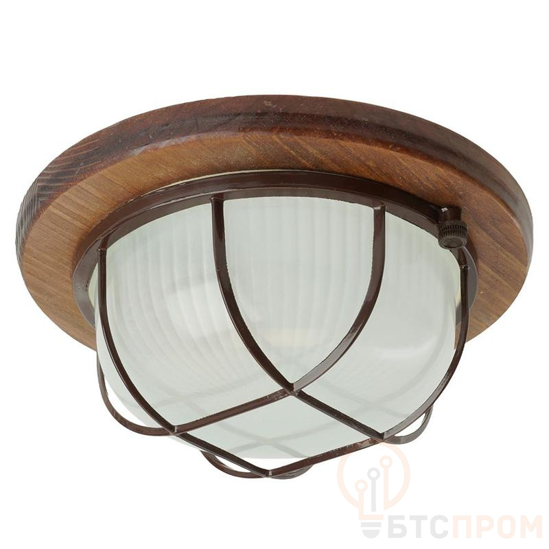 Светильник накладной под лампу, пылевлагозащищённый (НБО) FERON НБО 03-60-022, E27 60W, 220V, IP54, цвет орех, корпус сталь, дерево, рассеиватель стекло, 220*220*92