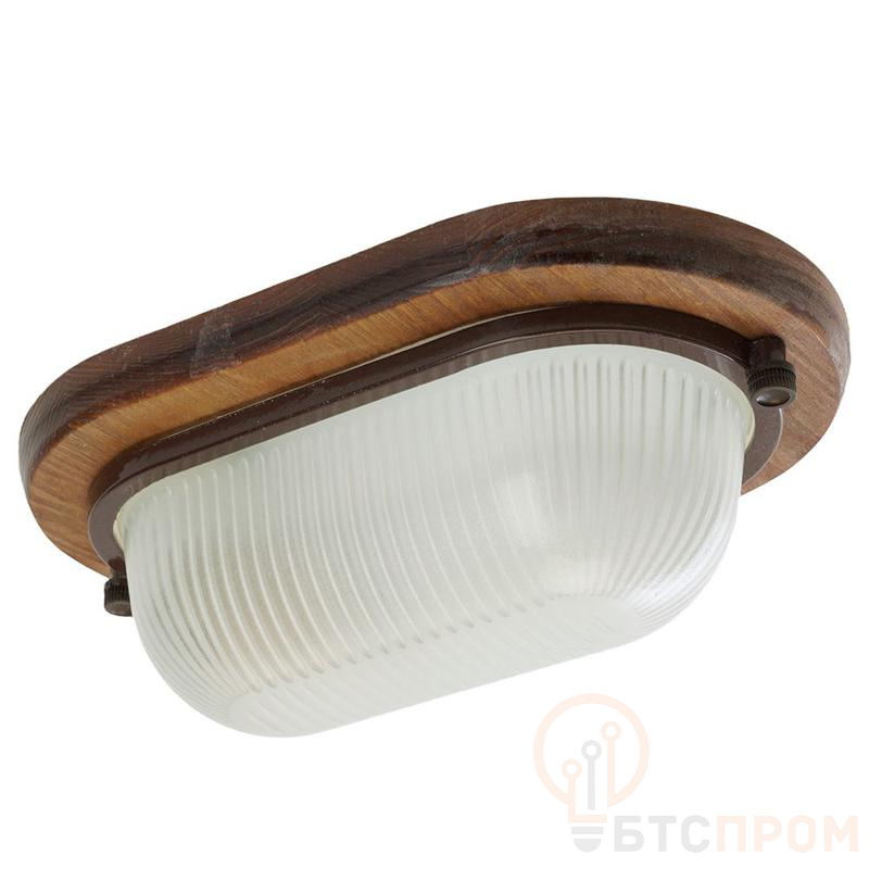 Светильник накладной под лампу, пылевлагозащищённый (НБО) FERON НБО 04-60-021, E27 60W, 220V, IP54, цвет орех, корпус сталь, дерево, рассеиватель стекло, 230*140*75
