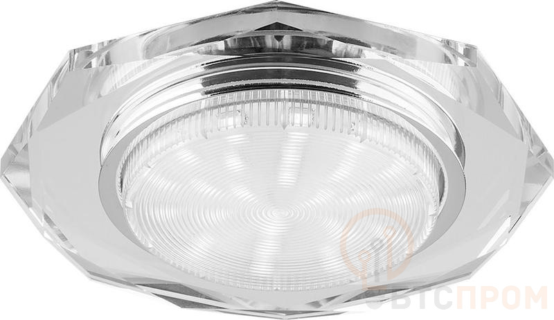 Светильник потолочный встраиваемый (ФВО) FERON DL4020-2, под лампу GX53 GX53, прозрачный хром, 8-ми гранник, 125*125*38 мм, монтажный диаметр 90мм, корпус стекло, неповоротный